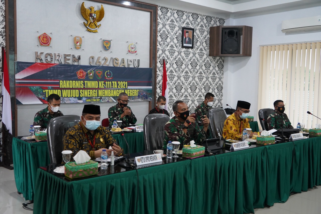 Dalam paparannya, Dandim 0420/Sarko selaku Dansatgas TMMD Ke 111 untuk wilayah Kodim 0420/Sarko, memaparkan segala sesuatu terkait kesiapannya dalam menyelenggarakan kegiatan TMMD tahun 2021.