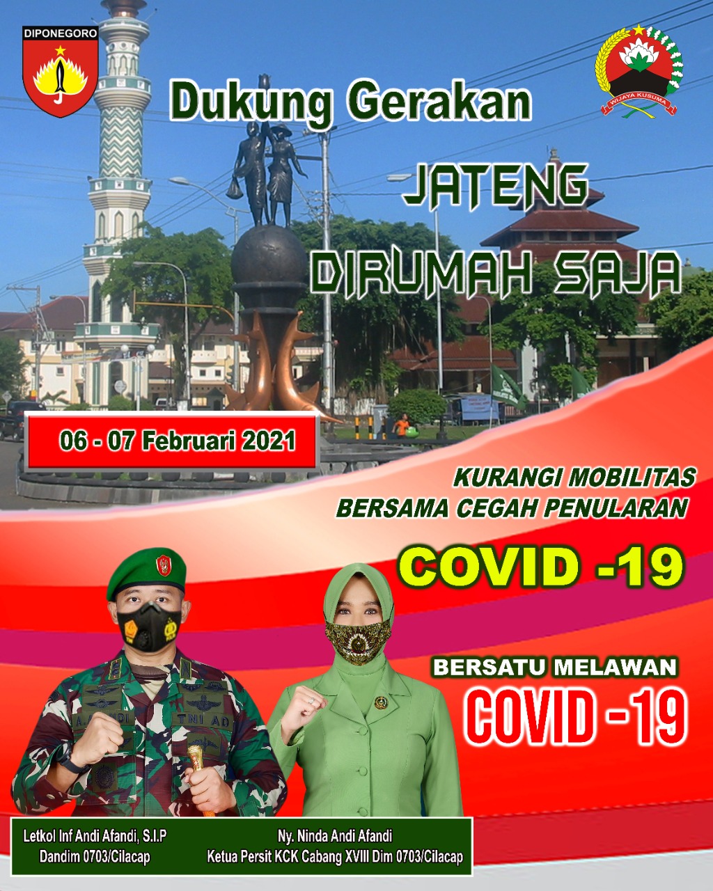 “Mari kita dukung gerakan Jawa Tengah di rumah saja dengan tidak melakukan aktifitas keluar rumah atau keluar di jalan, berkerumunan, bepergian apalagi liburan piknik dan sebagainya. Hanya dua hari saja kita menahan diri mulai Tanggal 6 hingga 7 Februari 2021 sebagai wujud empati kita terhadap korban Covid-19,” Ajak Dandim Letkol Inf Andi Afandi.