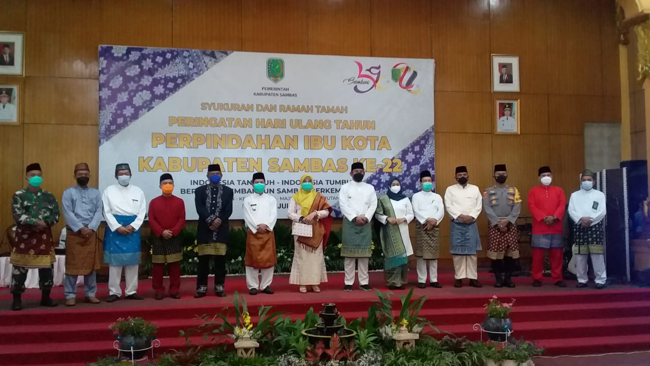 Sambas,maspolin.id- Komandan Kodim 1208/Sambas Letnan Kolonel Inf Setyo Budiyono S.H., M. Tr (Han) menghadiri acara syukuran Peringatan Hari Ulang Tahun ke-22 perpindahan Ibu Kota Sambas, bertempat di Aula Utama Kantor Bupati Sambas, Kamis (15/07/2021).