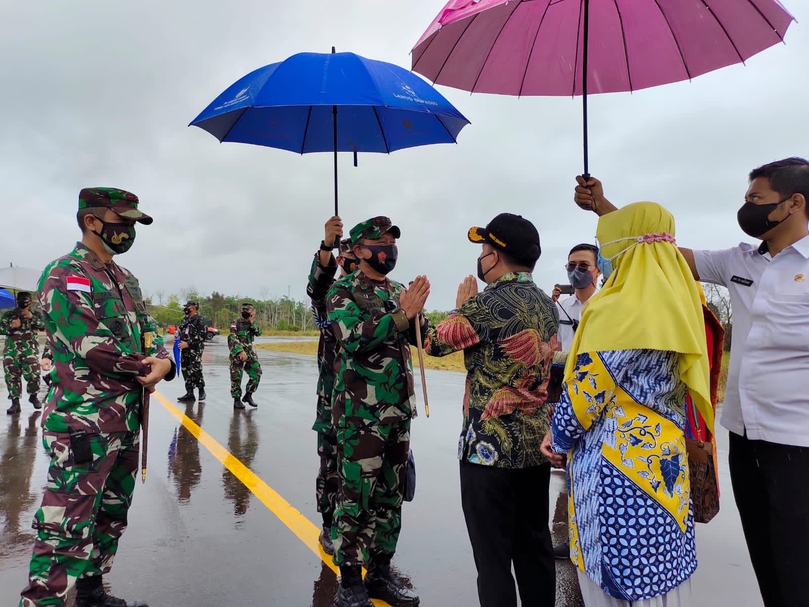 Sambas,maspolin.id- Bertempat di Lanud Liku, Dusun Perintis, Desa Nibung Kec. Paloh Kab. Sambas Komandan Kodim 1208/Sambas bersama Bupati Sambas Sambut kedatangan Pangkoopsau I Marsda TNI Ir. Tedi Rizalihadi, S., M.M. beserta Rombongan menggunakan Helly Puma TNI AU SA 330/HT 3315 dan laksanakan vaksinasi massal serta pemberian bansos di Lanud Liku, Rabu (18-8-2021)