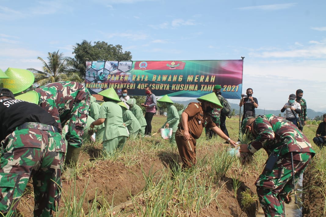 “Saya mengapresiasi upaya Satuan Yonif 405/Suryakusuma yang telah mengubah lahan ini dalam program ketahanan pangan, menjadi lahan budidaya bawang merah dan timun. Bawang merah yang dihasilkan juga tidak kalah dengan bawang merah dari daerah lain, terlebih lagi menggunakan pupuk organik, saya yakin hasilnya pun pasti organik.