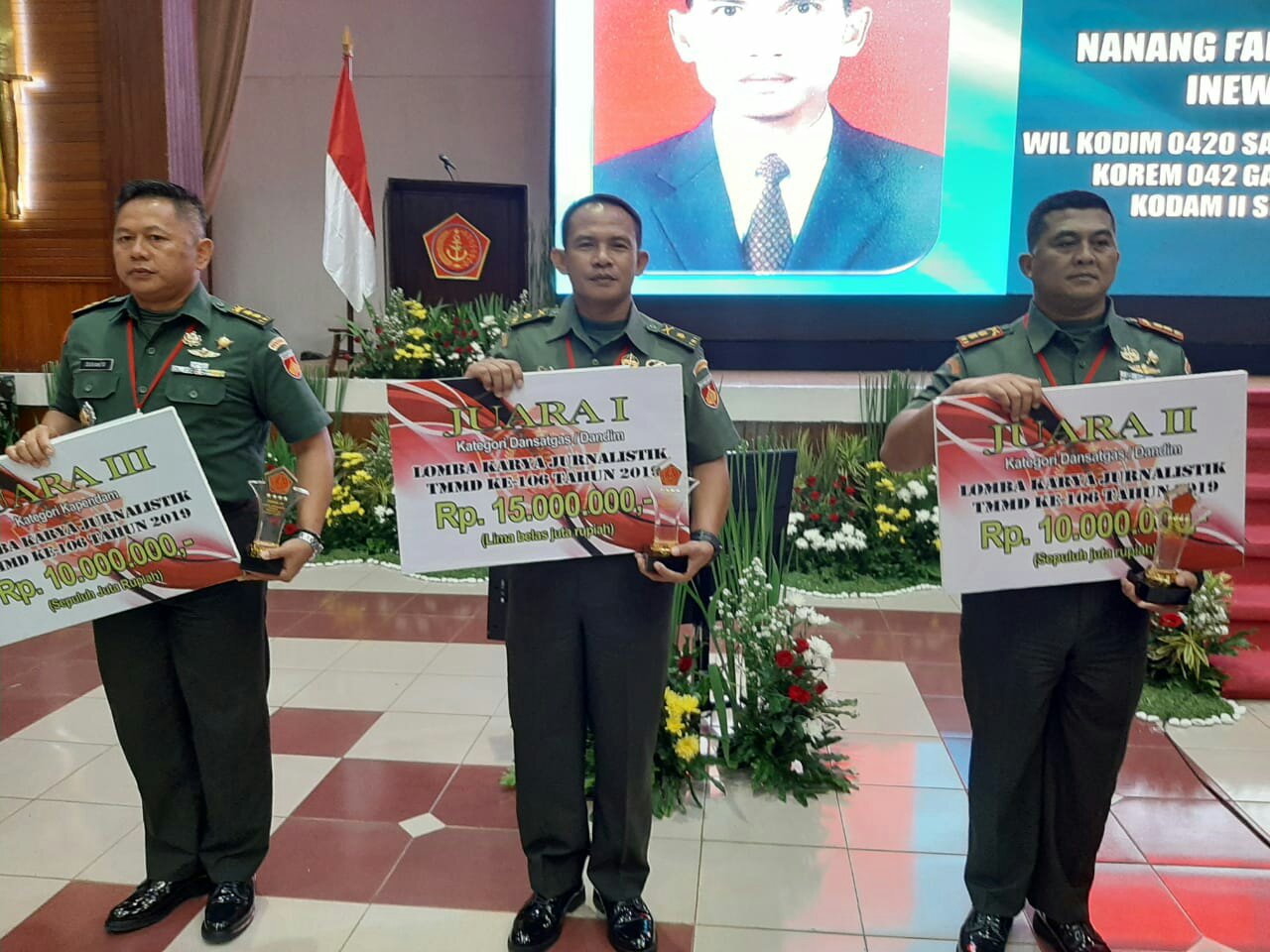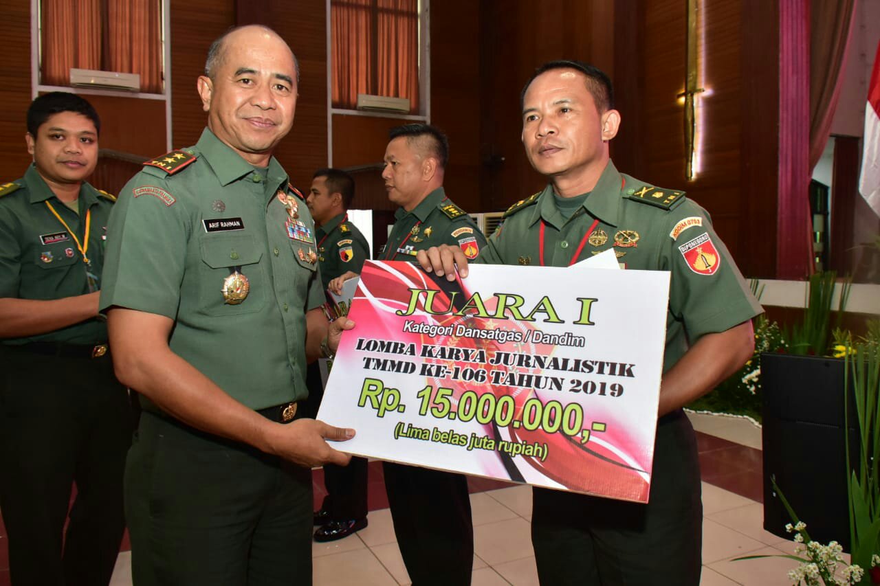 Hadiah diserahkan langsung oleh Dan Pusterad Mayjen TNI Arif Rahman kepada seluruh pemenang lomba dan bertepatan dengan Rapurna TMMD ke-40 tahun 2019 di Gedung Balai Komando Kopassus Cijantung, Jakarta Timur, Selasa (10/12/2019).