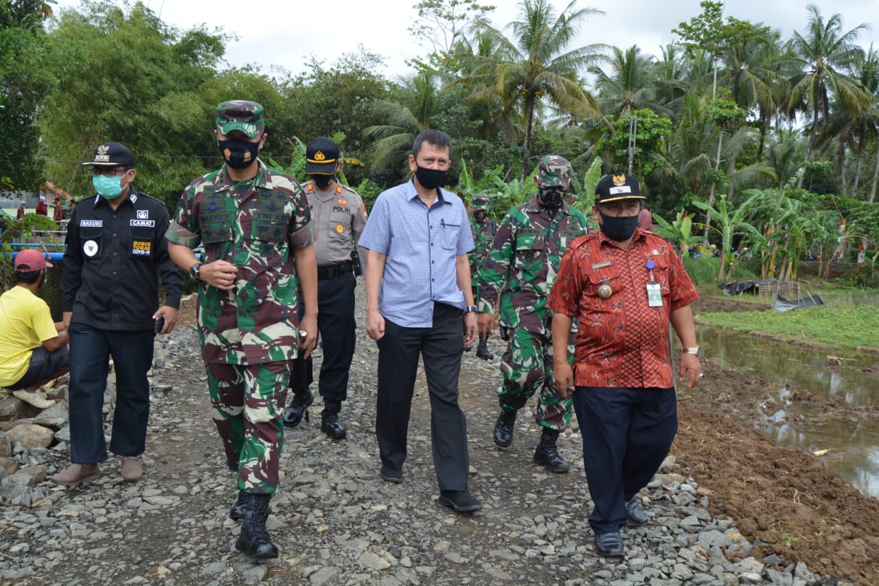 Selain mengecek pengerjaan jalan makadam, Dandim juga mengecek pembangunan bronjong volume panjang 66 × 4 meter yang menopang sisi selatan jalan yang berbatasan dengan irigasi.