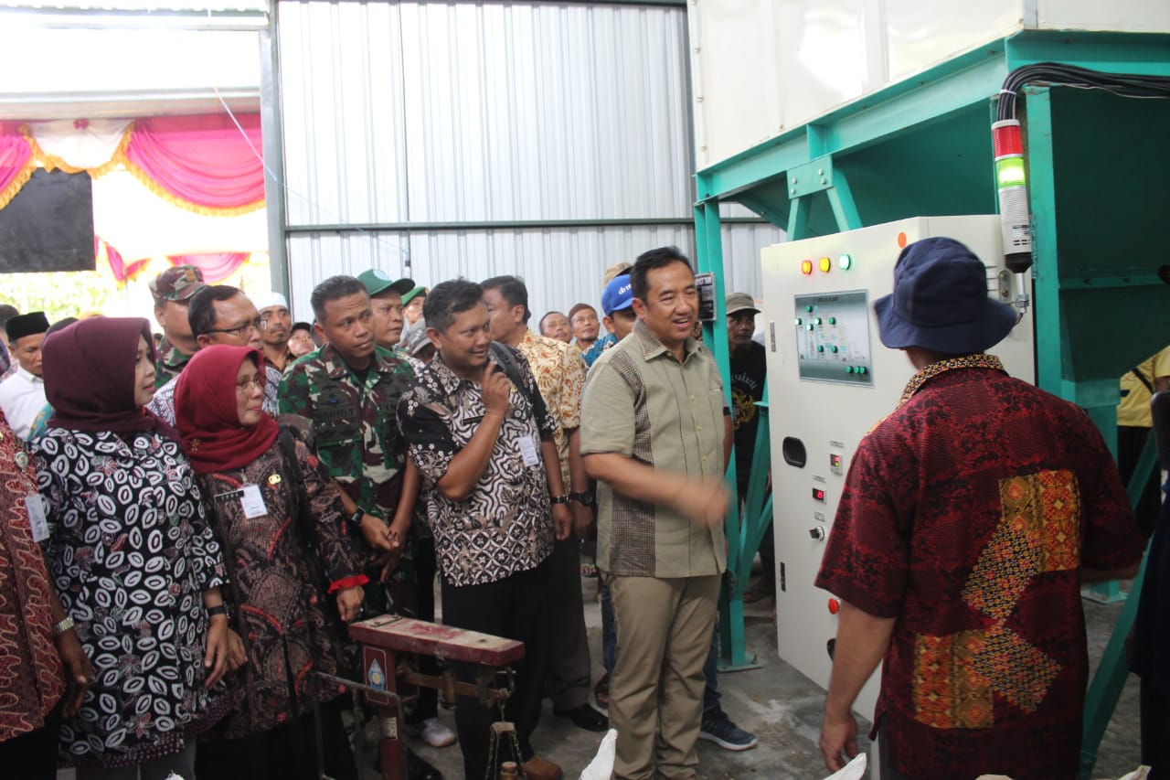 Kedatangan Dandim dan Bupati untuk uji coba mesin pengering jagung Vertical Dryer berkapasitas 6 ton yang diperuntukan Kelompok Tani Taruna Tani Akur, Desa Mentasan, Kecamatan Kawunganten.