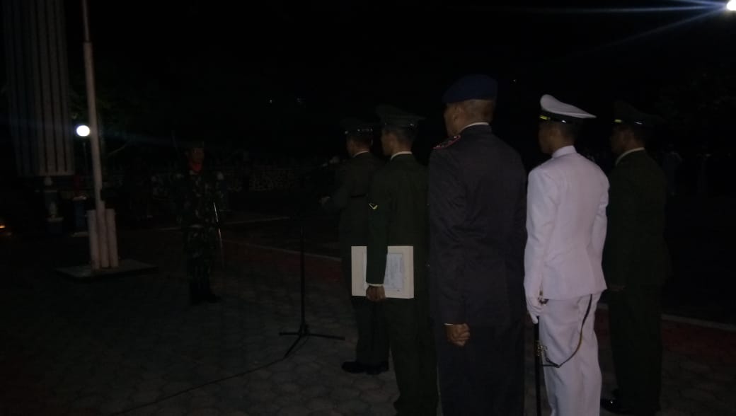 Apel yang berlangsung pada tengah malam, itu merupakan rangkaian peringatan HUT ke-74 RI yang dilaksanakan untuk mengenang arwah dan jasa para pahlawan bangsa yang telah gugur memperjuangkan kemerdekaan Indonesia.