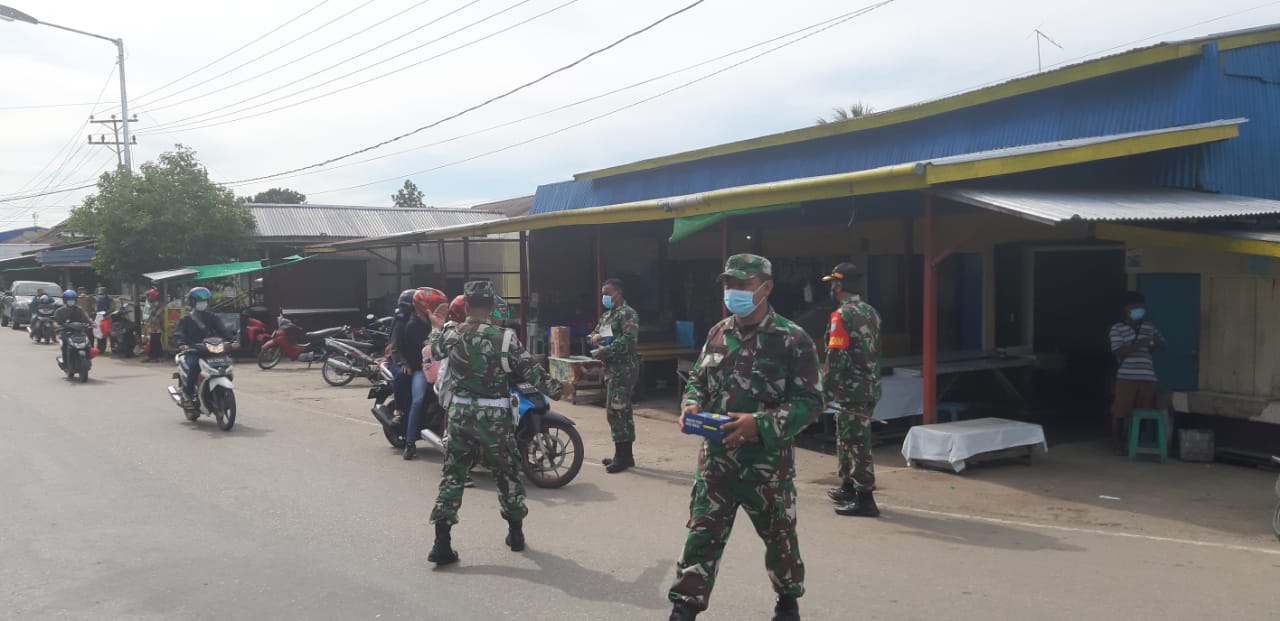 Kegiatan membagikan masker dan imbauan tersebut dilaksanakan oleh Personel Kodim 1208/Sambas dan Koramil 01/Sambas yang dipimpin langsung oleh Komandan Kodim 1208/Sambas Letkol Inf Setyo Budiyono, SH. M.Tr (Han).