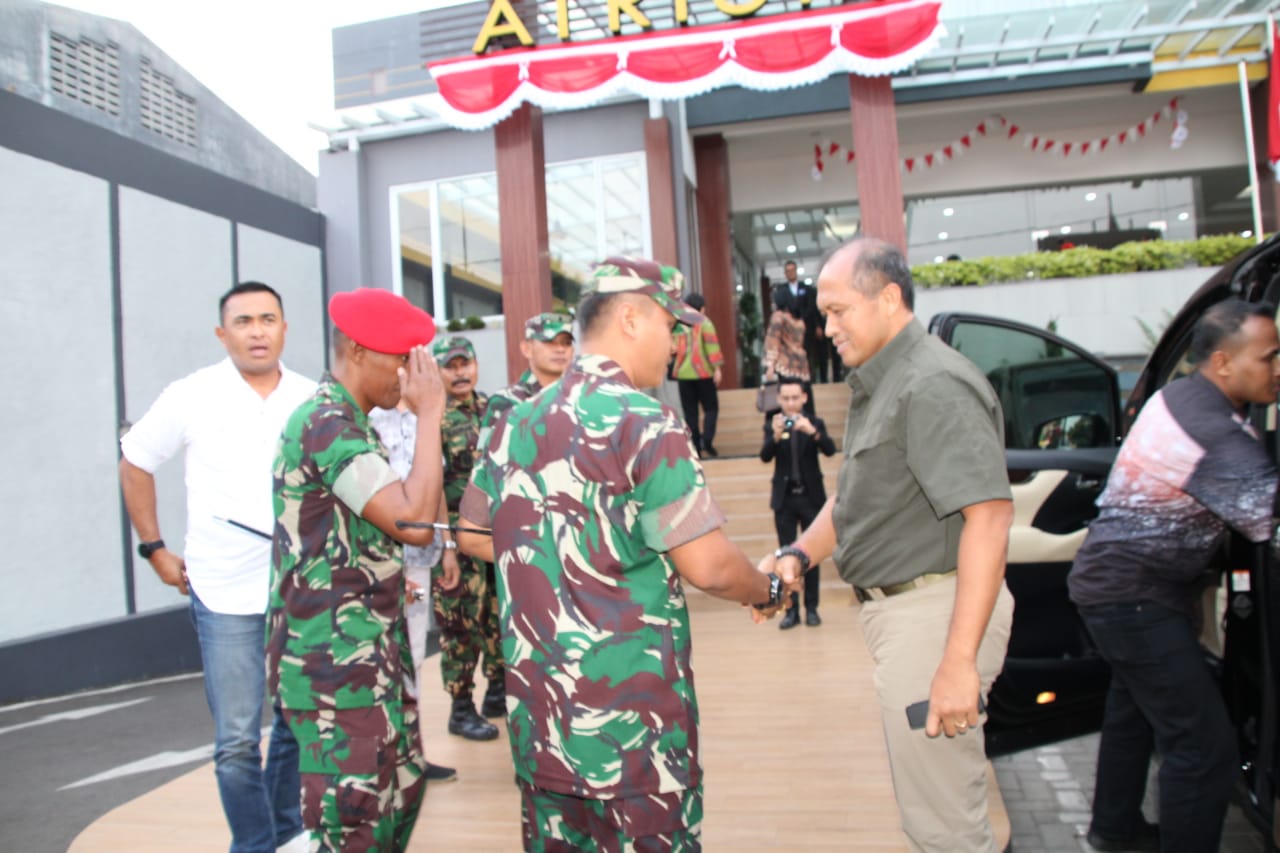 Cilacap, Maspolin.id – Dandim 0703/Cilacap Letkol Inf Wahyo Yuniartoto didampingi Kasdim Mayor Inf Ahmad Rofik Alfian dan sejumlah perwira Kodim lainnya menyambut kedatangan Danjen Kopassus Mayjen TNI I Nyoman Cantiasa di Hotel Atrium Premiere Cilacap, Jateng, Selasa (13/8/2019).
