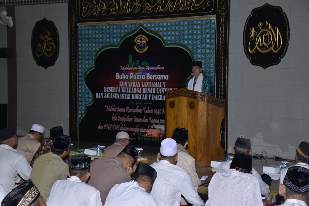 “Sengaja pelaksanaan buka puasa dilaksanakan pada awal Ramadhan hari Pertama ini, mengingat akan padatnya agenda kedepan untuk pelaksanaan safari Ramadhan, semoga jalinan silaturahim semakin erat dan kita mendapat ridlo-Nya,” terang Danlantamal V.