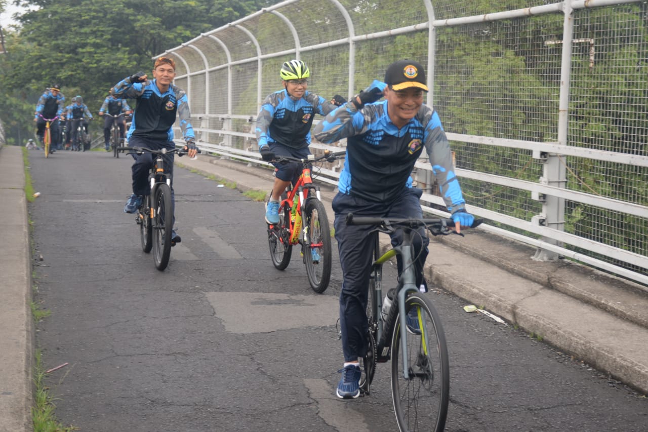 Lantamal V,Maspolin.id – Komandan Pangkalan Utama TNI AL (Danlantamal) V Laksma TNI Tedjo Sukmono, S.H., CHRMP. ajak seluruh Perwira Staf-nya Gowes bereng dengan Rute “( Start dari Mako Lantamal V menuju ke Bundaran Jl. M. Nasir kemudian menuju Bundaran Kodiklatal laju ke Penjagaan AAL lurus Mako AAL selanjutnya belok kanan Lapangan Aru tembus Pos belakang AAL melewati Mako STTAL belok kiri naik Jembatan Bungkuk Kodiklatal, belok kiri menyusuri Jl. Tanjung Sadari ke Jl. M. Nasir dan Finish di Mako Lantamal V)”. Selasa (21/1).