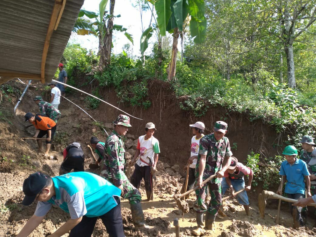 Cilacap, Maspolin.id – Dalam upaya menyolidkan hubungan TNI dan rakyat serta mengatasi kesulitan rakyat di wilayah sekitar, anggota Koramil 06/Kesugihan bekerja sama dengan anggota Polsek Kesugihan, melaksanakan kegiatan kerja bakti pasca bencana tanah longsor yang menimpa rumah Sugeng (35) di Dusun Sawangan RT 04 RW 06, Desa Keleng, Kecamatan Kesugihan, Kabupaten Cilacap, Jawa Tengah, Kamis (9/1/2020).
