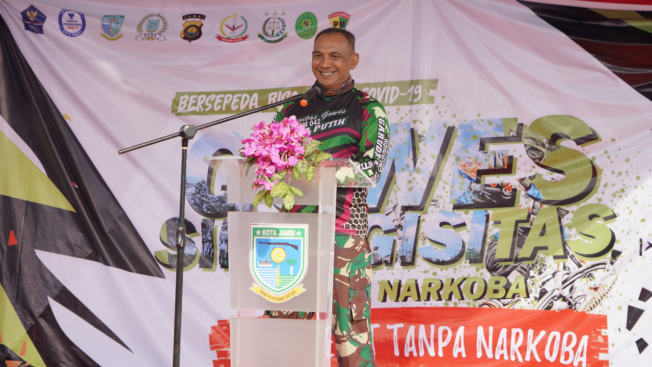 Hal tersebut disampaikan Danrem 042/Gapu Brigjen TNI M. Zulkifli, S.I.P,.M.M saat memberikan sambutan pada kegiatan Gowes Sinergitas bersama TNI, Polri dan Pemkot Jambi dalam rangka hidup sehat tanpa Narkoba, yang dilaksanakan pada Jumat, (17/07/2020).