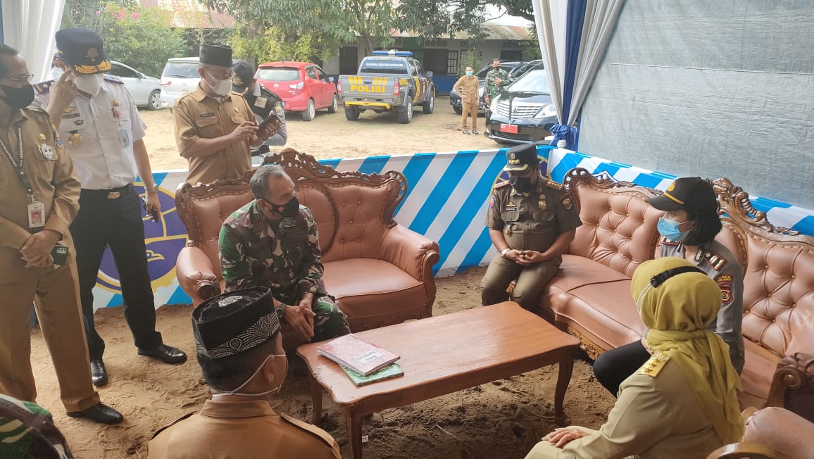 Jambi, Maspolin.id—Komandan Korem 042/Gapu Brigjen TNI M.Zulkifli, S.I.P, M.M bersama Pj Gubernur Jambi Dr. Hari Nur Cahya Murni M.Si dan Rombongan Forkopimda Prov. Jambi meninjau ke Pos Pam Penyekatan Jambi-Sumsel di Depan Panti Asuhan Sailun Salimbai Kel. Tempino Km. 23 Kec. Mestong Kabupaten Muaro Jambi. Senin (3/5/2021).