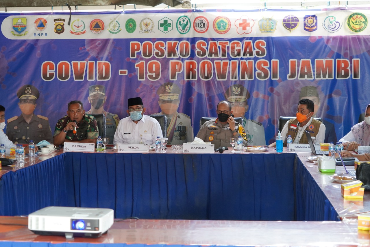 Selain Sekda Prov Jambi juga tampak hadir Kapolda Jambi, Kalak BPBD Prov Jambi, serta instansi terkait yang masuk dalam susunan Satgas Penanganan Covid-19 Prov Jambi.