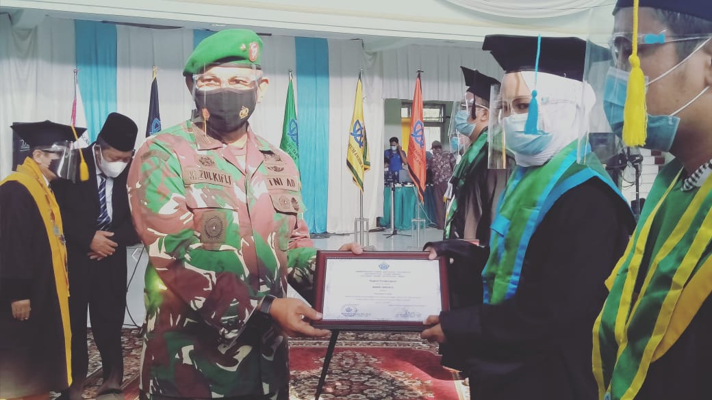 Pada kesempatan tersebut, Danrem 042/Garuda Putih juga memberikan ijazah kepada wisudawan/wisudawati. Acara ini dilaksanakan dengan tetap menerapkan protokol kesehatan.