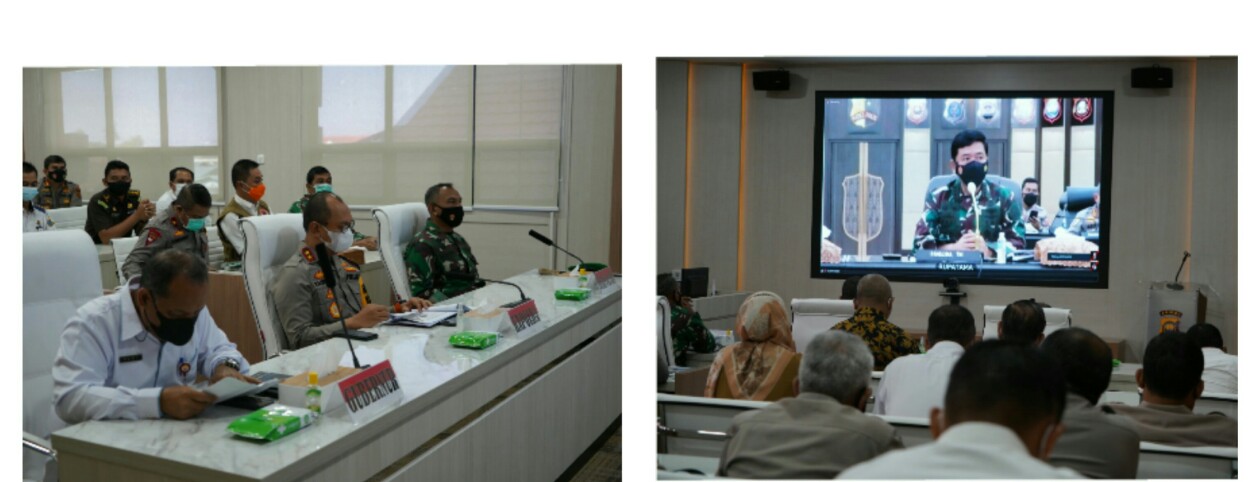 Danrem 042/Gapu Melalui Vicon Mengikuti Rapat Koordinasi Pengamanan Idul Fitri 1442 Hijriah