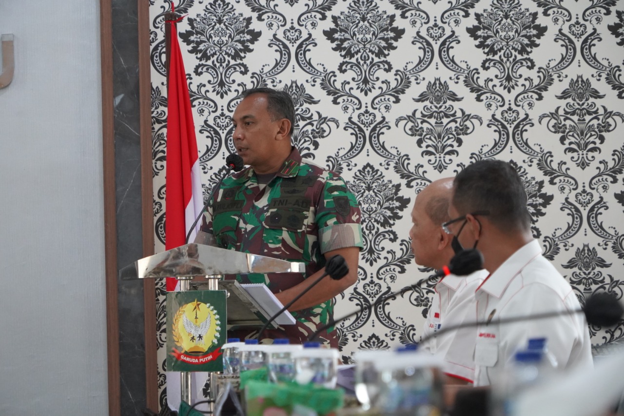 Jambi – Maspolin.id// Komandan Korem 042/Gapu Brigjen TNI M. Zulkifli, S.I.P, M.M menerima kunjungan kerja Tim Kemenko Polhukam RI, sebagai ketua Tim Deputi Bidkoor Pertahanan Negara Mayjend TNI Hilman Hadi, S.I.P, M.B.A, M. Han, di Makorem 042/Gapu, Jalan Jend Urip Sumohajo Kel. Sungai Putri Kec. Danau Sipin Kota Jambi. Senin (13/12/2021).
