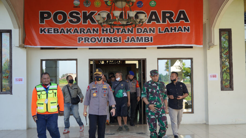 Jambi, Maspolin.id—Komandan Korem 042/Garuda Putih Brigjen TNI M. Zulkifli bersama Kapolda Jambi Irjen Pol Firman Shantyabudi Jum’at pagi melaksanakan patroli udara menggunakan helikopter memantau kebakaran hutan dan lahan di Provinsi Jambi.