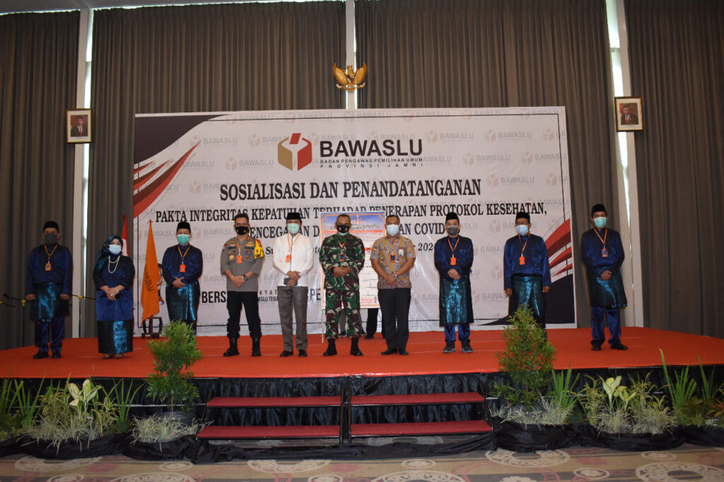 Dalam sambutannya, Ketua Bawaslu Provinsi Jambi Asnawi R, M.Pd mengatakan acara penandatangan fakta integritas adalah bentuk upaya pencegahan dan penegakkan hukum penerarapan protokol Kesehatan dalam penyelenggaraan Pilkada serentak tahun 2020, khususnya di Provinsi Jambi.