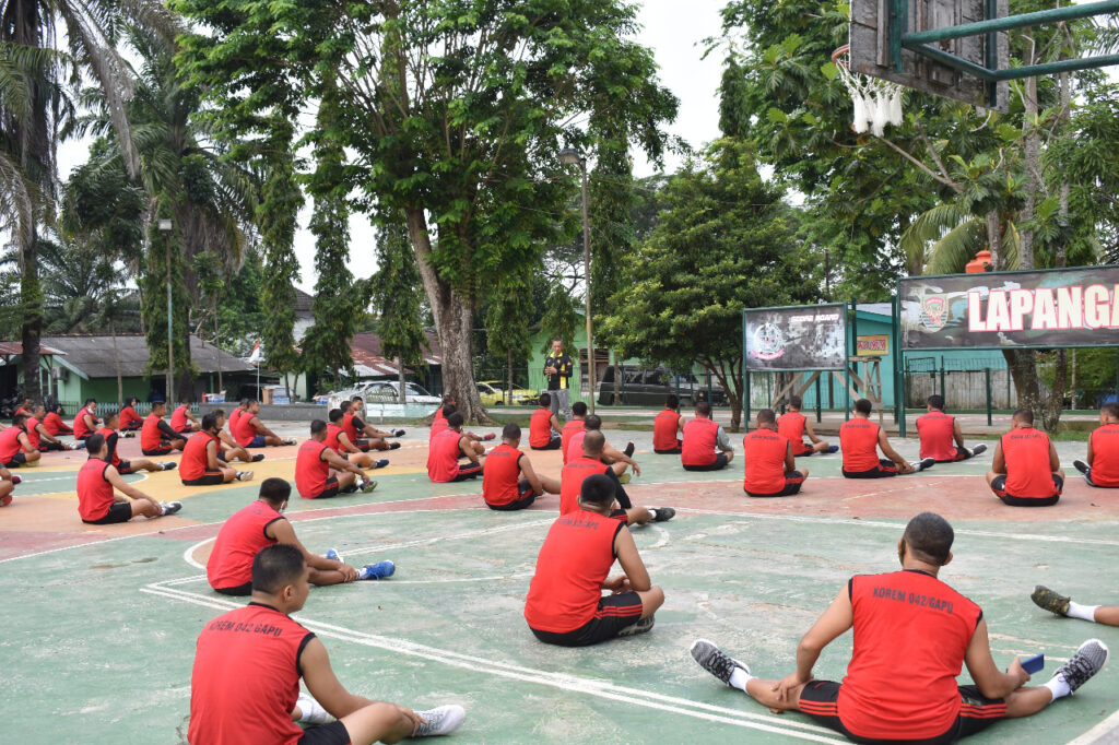 Jambi, Maspolin.id—Sehabis melaksanakan olahraga rutin Danrem 042/Gapu Brigjen TNI M. Zilkifli, memberikan pengarahan kepada seluruh anggota Makorem, di Lapangan Basket Garuda Putih, Makorem 042/Gapu jl. Jend Urip Sumoharjo Kota Jambi, Selasa, (11/08/2020).