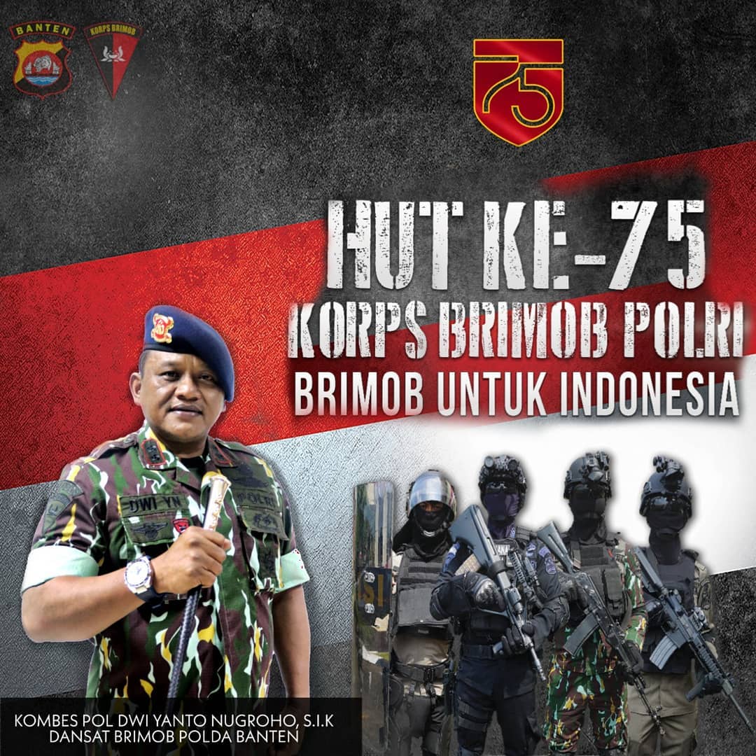 “Kami jajaran Satuan Brimob Polda Banten beserta staff dan Bahayangkari, mengucapkan selamat HUT Korps Brimob Polri ke 75 di tahun 2020. Brimob Untuk Indonesia,” ucap Komandan Satuan Brimob Polda Banten Kombes Pol Dwi Yanto Nugroho, Sabtu (14/11/2020).