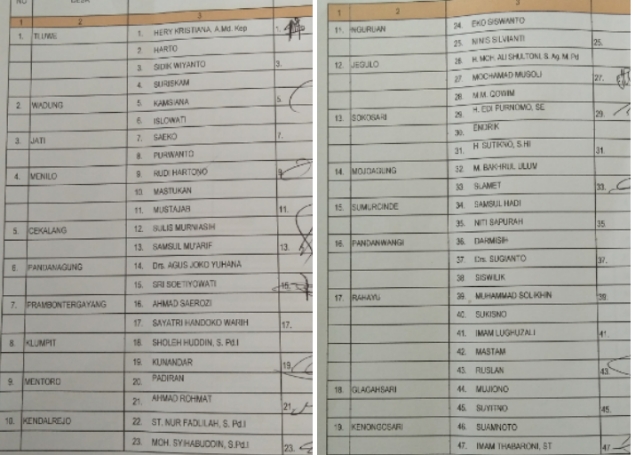 - Sugiyanto, Cakades Desa Pandanwangi, Soko.
