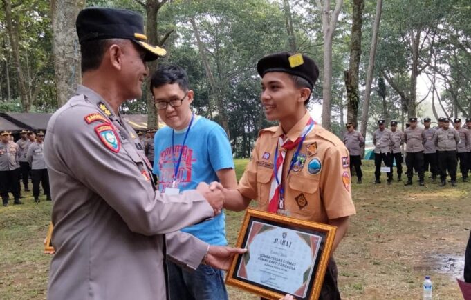 Pacitan – Maspolin.id|| Kabar baik, perwakilan dari Polres Pacitan yang juga Ketua Osis SMA N 1 Pacitan Muhamad Alif Sumba Perdana raih juara 1 lomba cerdas cermat pada ajang Kemah Bakti Pancasila yang diselenggarakan Ditbinmas Polda Jawa Timur.