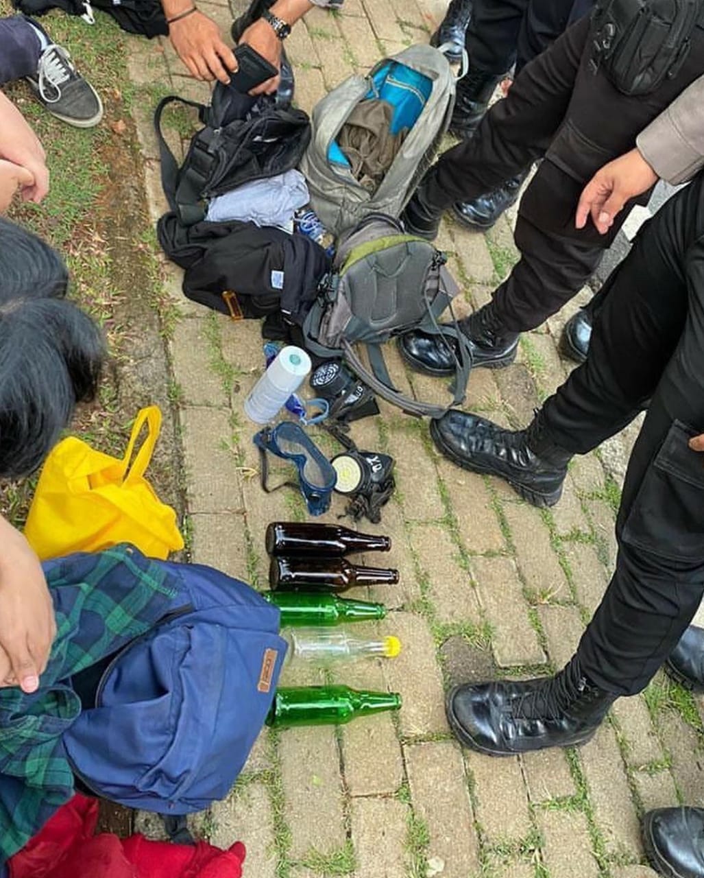 Dia menuturkan, D dari Bekasi sedangkan R dari Jakarta Timur. Saat digeledah, polisi menemukan barang bukti berupa bom molotov dan alat pelindung gas air mata serta beberapa stiker buku.