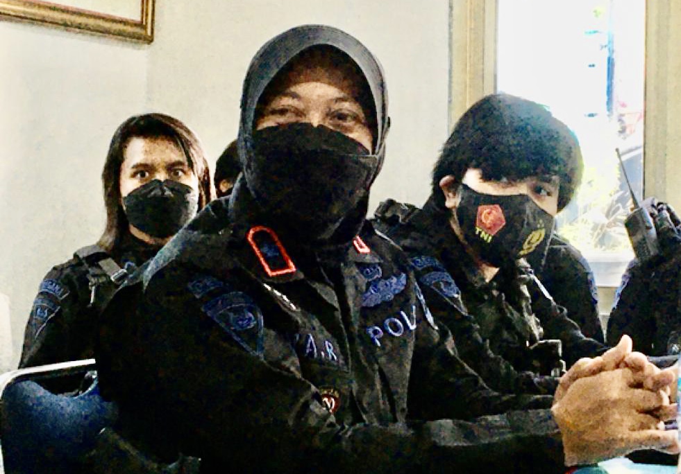MASPOLIN.ID.-DEPOK- Lengkap berseragam serba hitam dan bersenjata laras panjang dengan baretnya, sebanyak 20 orang anggota Polwan Korp Brimob Polri menggeruduk kantor PWI Kota Depok, Selasa (22/03/2022).