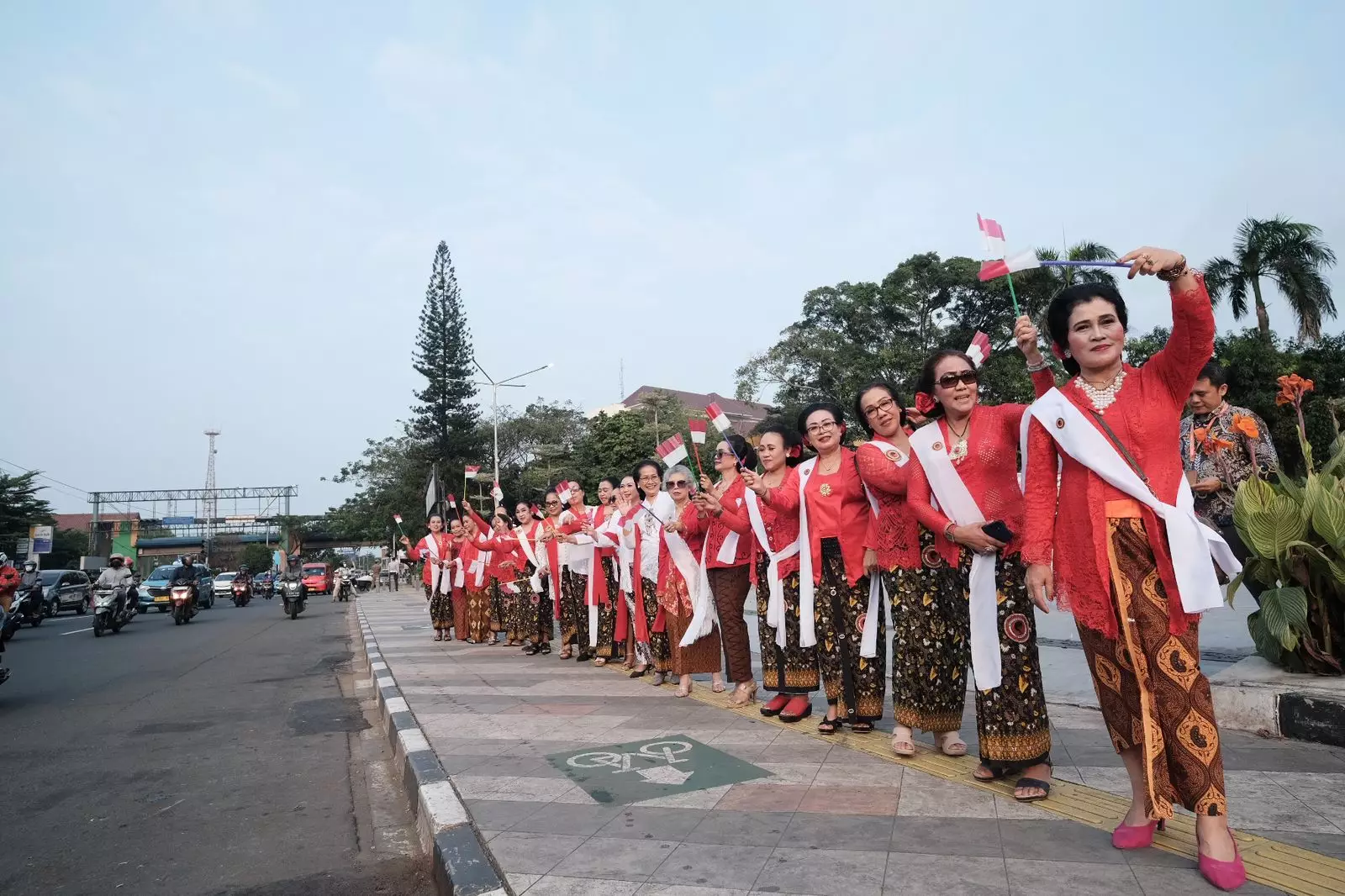 Berbagai perwakilan wilayah turut hadir menggunakan kebaya bernuansa merah dan putih.