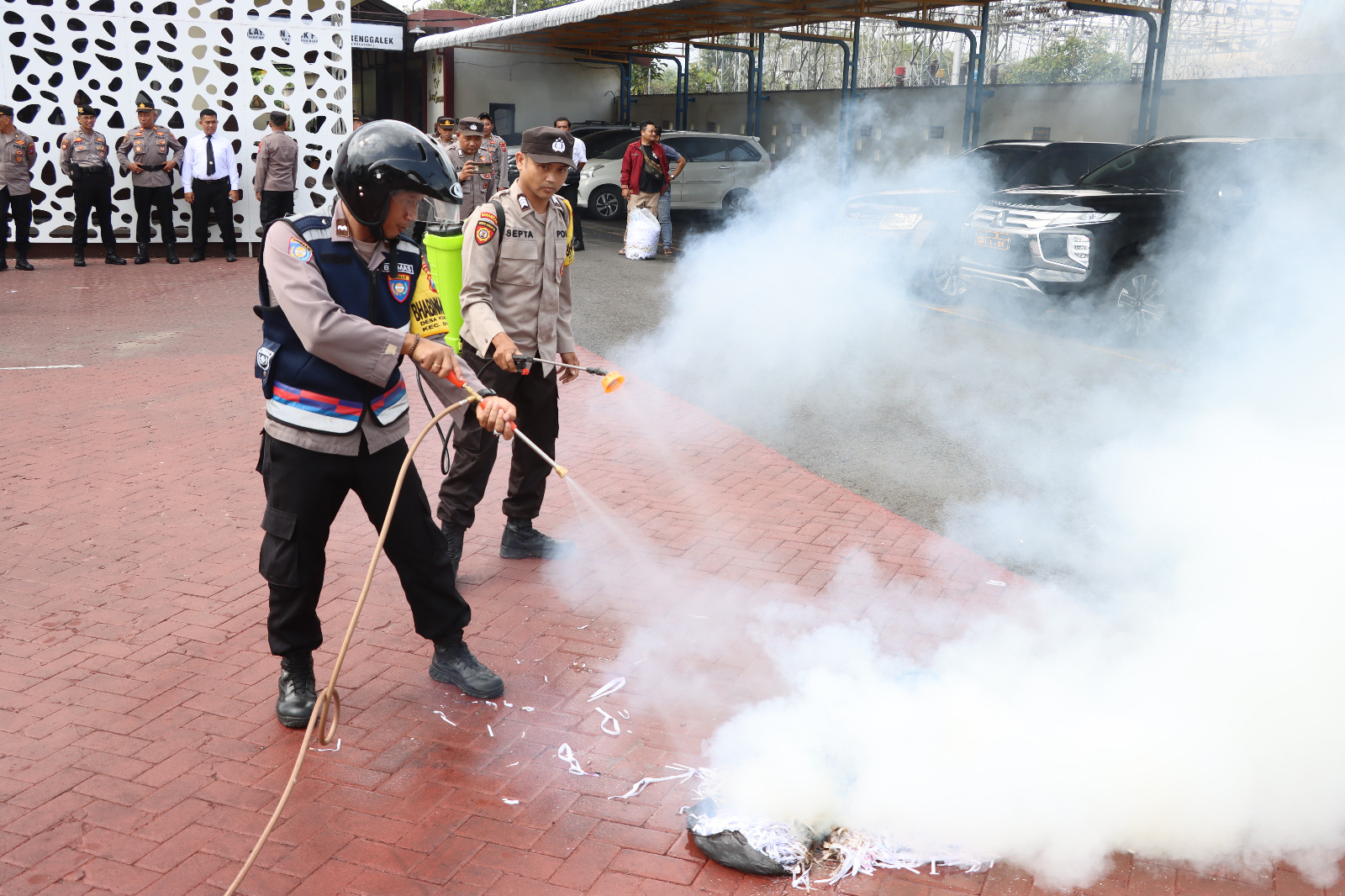 “Dengan demikian dapat digunakan untuk memadamkan api dengan jangkauan semprotan yang lebih luas. Tinggal tarik selang langsung semprot,” tambah AKBP Gathut.