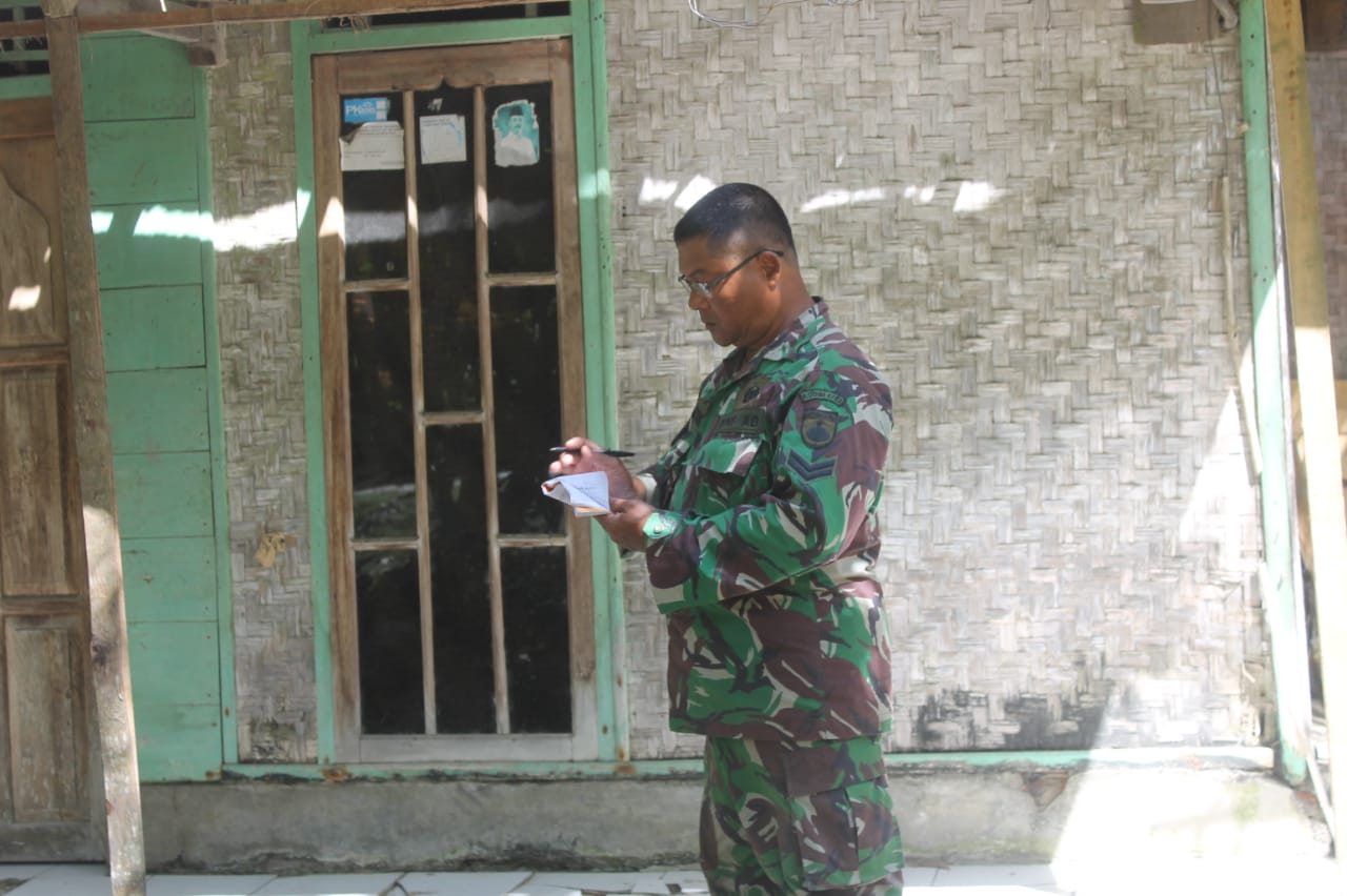 Cilacap, Maspolin.id – Anggota Satgas TMMD Sengkuyung II Kodim 0703/Cilacap, Sertu Basuki mengecek beberapa rumah sasaran rehab RTLH yang belum sempat tergarap di Dusun Kalenwedi, Desa Cimrutu, Kecamatan Patimuan, Cilacap, Jateng, Selasa (16/7/2019).