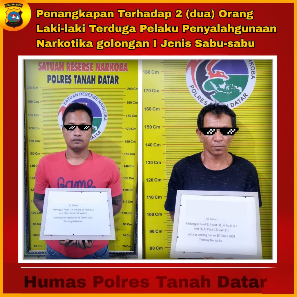 Tanah Datar, SUMBAR – Maspolin.id|| Dalam upaya menekan Penyebaran serta Penyalahgunaan Narkotika di Wilayah Hukum Polres Tanah Datar, Tim Tarantula Sat Res Narkoba kembali berhasil mengamankan 2 (dua) orang Laki-laki yang diduga menjadi pelaku penyalahgunaan Narkotika Golongan I Jenis Sabu-sabu di Kecamatan Sungai Tarab Kab Tanah Datar.