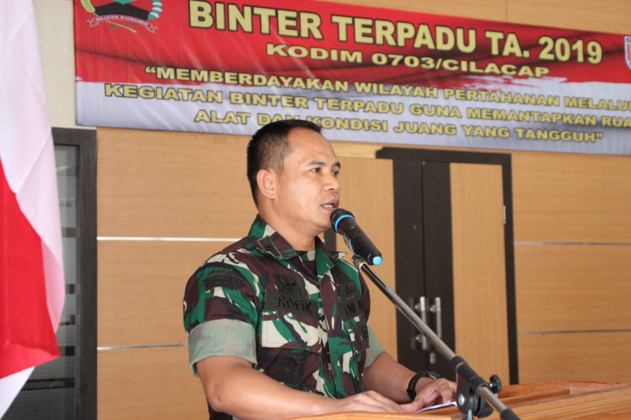 Kepala Staf (Kasdim) Kodim 0703/Cilacap, Mayor Inf Ahmad Rofik Alfian hadir dalam kegiatan tersebut, yang melibatkan berbagai unsur masyarakat itu. “Pola pembinaan binter tak lepas dari 3 metode binter, yaitu pembinaan ketahanan wilayah, pembinaan Bakti TNI, dan pembinaan komunikasi sosial,” kata dia.