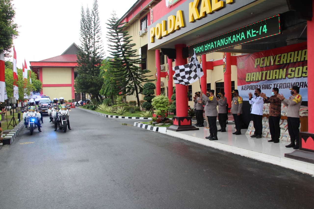 Kali ini, Polda Kalteng mendistribusikan 15 ton beras untuk masyarakat Kalteng yang terdampak pandemi Covid-19, Jumat (11/12/2020).