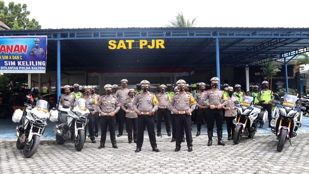 MASPOLIN || Palangka Raya (Kalteng) — Jajaran Direktorat Lalu Lintas (Ditlantas) Polda Kalteng, siang ini menggelar penandatanganan pakta integritas komitmen Zona Integritas menuju Wilayah Bebas Korupsi (WBK) dan Wilayah Birokrasi Bersih Melayani (WBBM), di halaman kantor Satuan PJR Ditlantas Polda Kalteng, Selasa (27/10/2020).