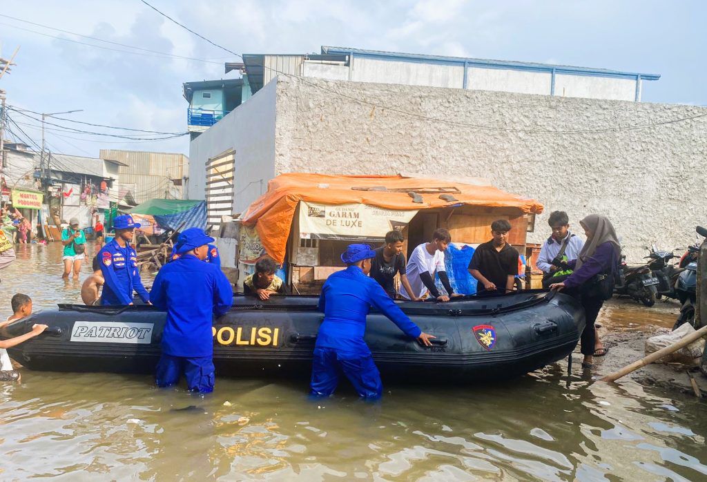 POLDA METRO JAYA – Maspolin.id|| Direktorat Kepolisian Perairan dan Udara (Ditpolairud) Polda Metro Jaya mengerahkan puluhan personelnya untuk memberikan bantuan warga muara angke, Jakarta Utara yang terdampak banjir air rob, Senin (18/11/2024).