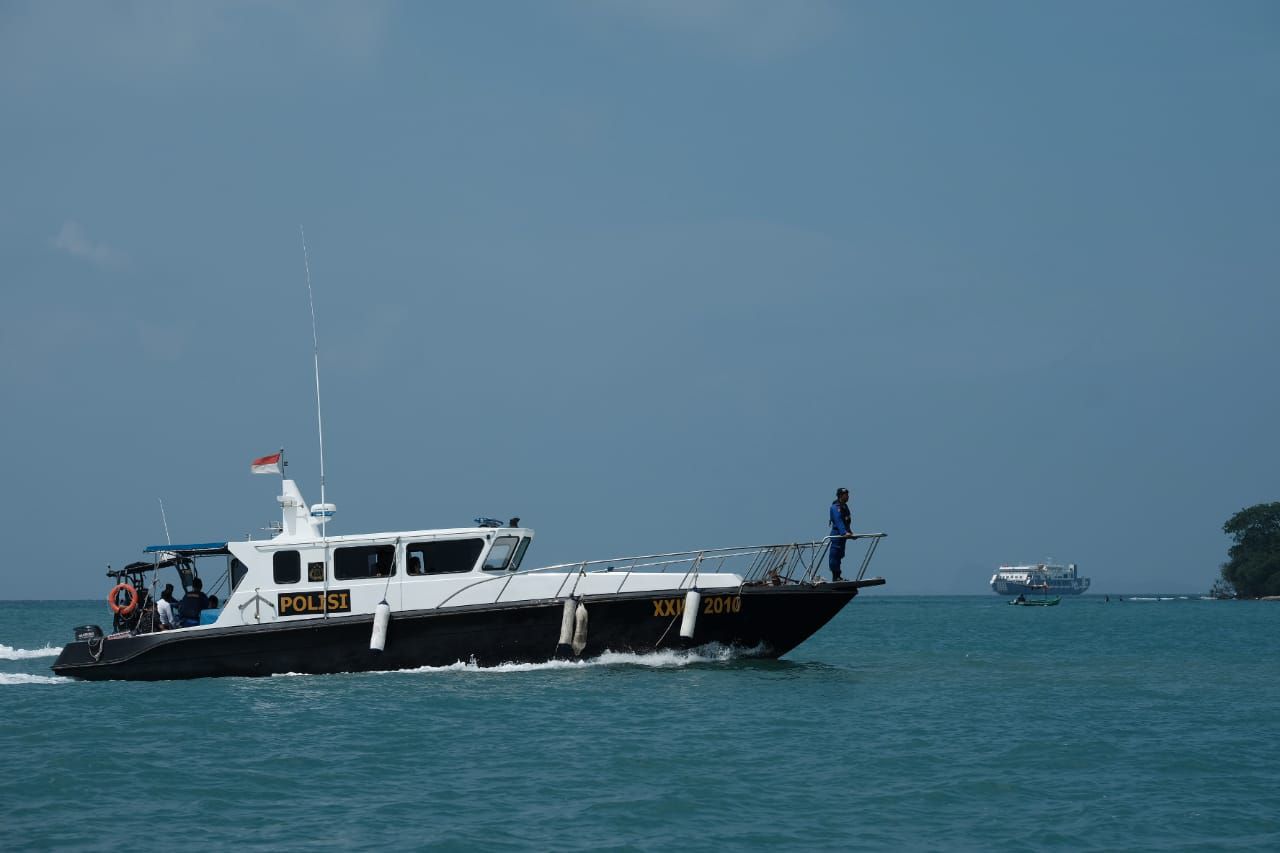 SERANG, Banten – Ditpolairud Polda Banten laksanakan patroli perairan bersama tim yang tergabung dalam talk show The Police Trans 7 berlokasi di pelabuhan Merak, Provinsi Banten, Sabtu siang (26/01/2019) pukul 09.00 WIB