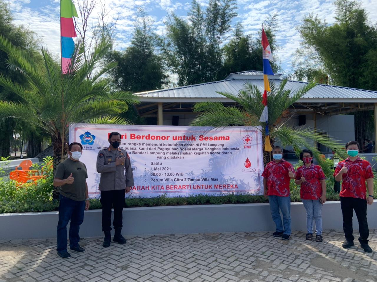 MASPOLIN || Bandar Lampung (Lampung) – Sudah 117 kali Kabid Humas Polda Lampung Kombes Pol Zahwani Pandra Arsyad, secara sukarela mendonorkan darahnya di kegiatan donor darah sukarela Palang Merah Indonesia (PMI) bersama Paguyuban Sosial Marga Tionghoa Indonesia (PSMTI) yang dilaksanakan di Perumahan (Perum) Villa Citra 2 Taman Villa Mas, Sabtu (01/05/2021).