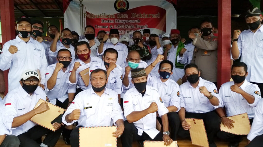 MASPOLIN.ID.-MARGONDA, DEPOK- Dengan mengangkat tajuk ‘Meningkatkan sinergitas antara Bamus Ormas dan LSM dengan Pemerintah Kota Depok mewujudkan Kota Depok yang ramah, aman dan nyaman untuk semua’, Badan Musyawarah (Bamus) Ormas dan LSM Kota Depok melaksanakan pelantikan dan deklarasi untuk masa bhakti 2020-2023 yang berlangsung di Kampung Komunitas Kita (K3D0), Jl. Margonda Raya, Beji, Kota Depok, Rabu (02/08/2020).