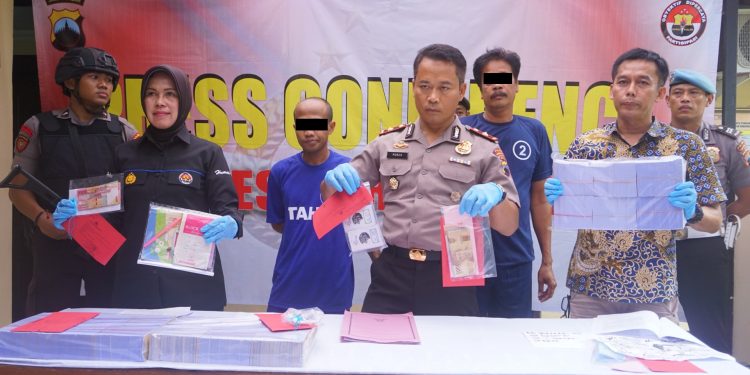 PurbaIingga,Maspolin.id – Polres Purbalingga mengamankan dua tersangka penjual kupon togel yang berjualan di dua lokasi berbeda. Tersangka berhasil diamankan tanpa perlawanan berikut barang buktinya.