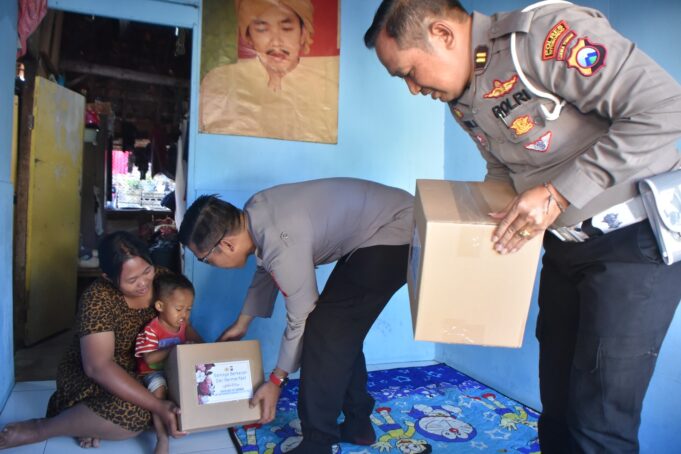 Kali ini Kapolres Situbondo memberikan Susu, Biskuit, Bubur dan makanan tambahan lain yang mendukung tumbuh kembang anak yang menderita Stunting.