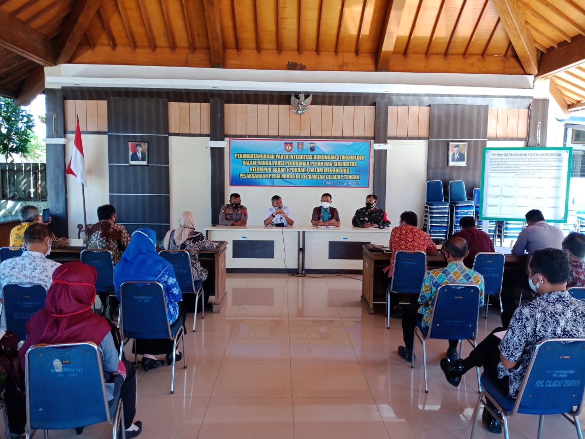 Di Kecamatan Cilacap Tengah, dalam rangka mendukung PPKM Mikro, Forkopincam menindaklanjuti dengan membentuk Tim Efektif dan perubahan peran Pokdar Kamtibmas. Pembentukan Tim Efektif berlangsung di Pendopo Kecamatan Cilacap Tengah, Jln. Kalimantan No.32 Kecamatan Cilacap Tengah, Kabupaten Cilacap, Kamis (22/4/21).
