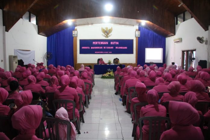Bojonegoro,Maspolin.id – Bhayangkari Cabang Bojonegoro pada hari Jum’at (29/03/2019) tadi menggelar acara pertemuan rutin yang diselenggarakan di Aula Mliwis Putih Mako Sat Lantas Polres Bojonegoro. Dalam acara tersebut, dihadiri oleh Pembina Bhayangkari cabang Bojonegoro AKBP Ary Fadli, SIK., MH., M.Si, Ketua Bhayangkari Cabang Bojonegoro Ny. Rani Ary Fadli, seluruh pengurus Cabang dan Yayasan Kemala Bhayangkari, ketua Ranting se cabang bojonegoro serta perwakilan anggota Bhayangkari satker Polres bojonegoro.