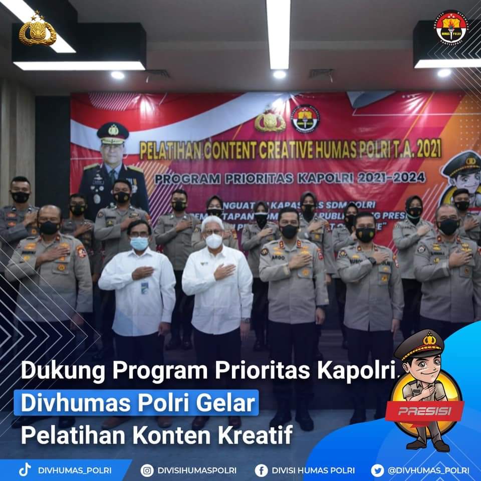 MASPOLIN || JAKARTA – Divisi Humas Polri menggandeng LKBN Antara menggelar pelatihan konten kreatif bagi seluruh personel jajaran Humas Polri di seluruh Indonesia. Pelatihan dalam rangka mendukung Program Prioritas Kapolri ini bertema “Penguatan Kapasitas SDM Polri dan Pemantapan Komunikasi Publik Yang Presisi Melalui Pelatihan Content Creative.” Melalui adanya pelatihan ini diharapkan seluruh personel Humas Polri mampu menyiapkan, mengolah dan menyajikan konten informasi yang kreatif dalam rangka menjaga kamtibmas.