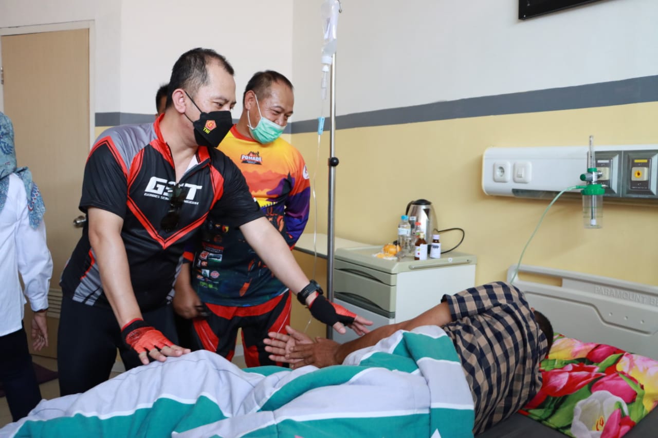 Mojokerto – Maspolin.id|| Program E-Yankes pelayanan kesehatan merupakan Program Kapolda Jatim dan diamplifikasi Kapolresta Mojokerto, AKBP Wiwit Adisatria, S.H.,S.I.K.,M.T bersama Pejabat Utama dengan menjenguk Ka SPKT IPTU Asmuni di RS Gatoel sebagai wujud Kepedulian dan memberikan motivasi kesembuhan. Sabtu (03/09/22) Siang