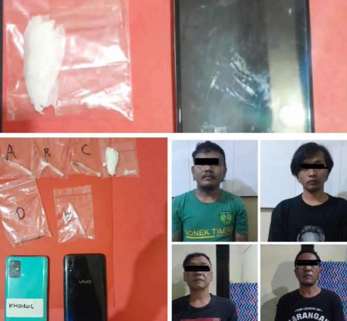 Dari pengungkapan tersebut, Polisi berhasil mengamankan empat orang tersangka yang diduga kuat sebagai pelaku penyalahgunaan Narkoba.