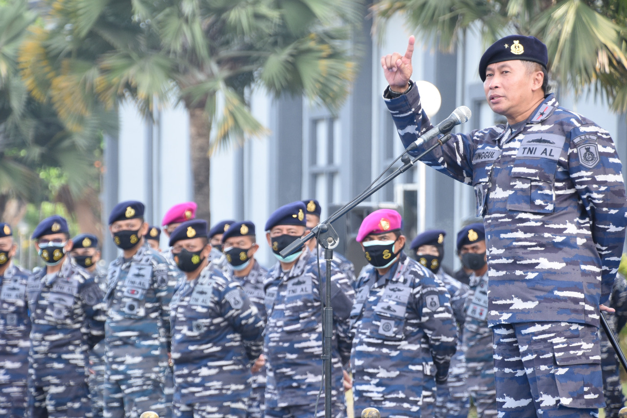 MASPOLIN || Surabaya – Entry Briefing pasca Serah Terima Jabatan (Sertijab) dan lepas sambut kemarin, mengawali tugas di hari pertama Laksamana Pertama TNI Tunggul Suropati, S.E., M.Tr. (Han) menjabat sebagai Gubernur Akademi Angkatan Laut (AAL) menggantikan Laksda TNI Edi Sucipto, S.E.,M.M. yang diikuti seluruh personel dan Taruna Taruni AAL di lapangan Banda, Mako AAL, Kesatrian Bumimoro, Surabaya, Jum’at, (9/10).