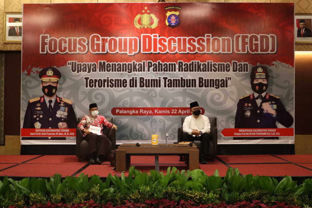 Terkait akan hal tersebut, Kapolda Kalteng Irjen Pol. Dr. Dedi Prasetyo, menginisiasi untuk menggelar Forum Group Discussion (FGD) dengan menghadirkan Imam Besar Masjid Istiqlal Prof. KH Nasaruddin Umar, M.A., Ph.D., secara virtual di salah satu hotel di Kota Palangka Raya, Kamis (22/04/2021).