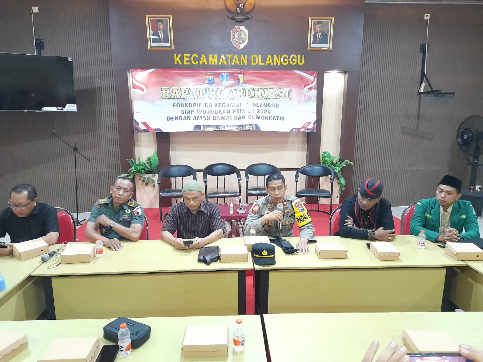 PS. Kapolsek Dlanggu IPTU Mohammad Khoirul Umam menggandeng Camat Dlanggu Drs. Ahmad Samsul Bakri M.Si. dan Danramil Dlanggu Kapten Inf Warudi untuk menggelar Rapat Koordinasi dengan moto Sayangi Dlanggu Siap Wujudkan Pemilu 2024 dengan Aman, Damai dan Demokratis di lantai 3 kantor Kecamatan Dlanggu. Rabu (13/12/23)