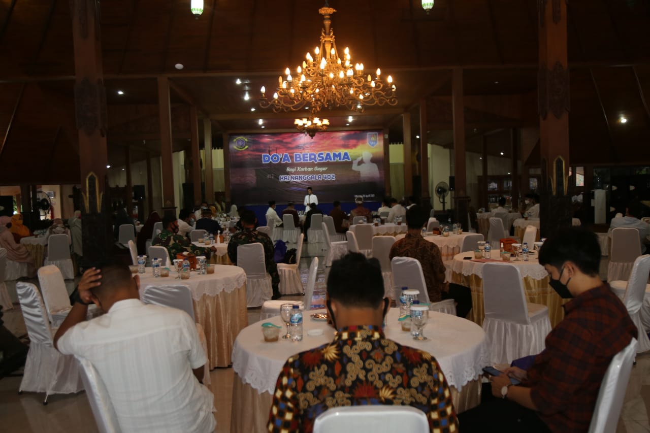 Maspolin.id, Cilacap – Sebagai wujud empati atas musibah tenggelamnya KRI Nanggala 402 di Perairan Laut Bali yang merenggut 53 prajurit TNI AL termasuk didalamnya putra terbaik dari Kabupaten Cilacap yaitu Sertu Yoto Eki Setiawan, Forkopimda Kabupaten Cilacap bersama tokoh masyarakat menggelar Do’a bersama untuk mendoakan para korban yang gugur, bertempat di Pendopo Wijayakusuma Sakti Kabupaten Cilacap, Kamis (29/04/2021) malam.